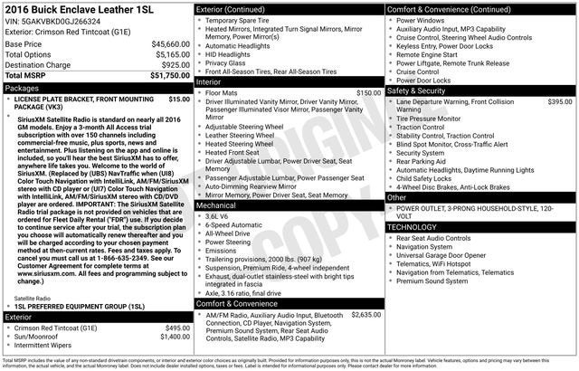 With its exceptional blend of style, technology, and performance, the 2016 Buick Enclave Leather Group is the ultimate expression of refined SUV excellence. Visit our showroom and let us demonstrate how this remarkable vehicle can enhance your driving experience.