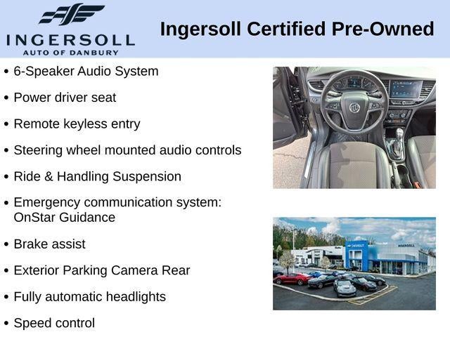 For your comfort and convenience, this Encore Preferred offers power windows, power driver's seat, and a rear window defroster. The rear-view camera and electronic stability control provide added peace of mind, while the heated door mirrors and fully automatic headlights ensure optimal visibility in any driving conditions.
