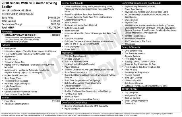 2018 Subaru WRX STI Limited