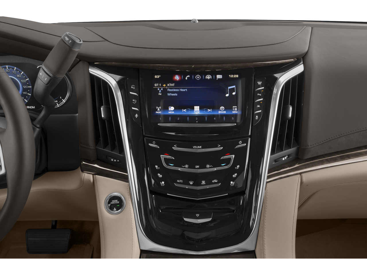 Step inside the cabin and be enveloped in the luxurious ambiance of the Escalade ESV Platinum Edition. The Bose Centerpoint 16 Speaker Surround Sound System and the Reconfigurable 4-Color Head-Up Display create an immersive and technologically advanced environment, while the Heated & Cooled Driver & Front Passenger Seats and the Heated Rear Seats ensure unparalleled comfort for all occupants.