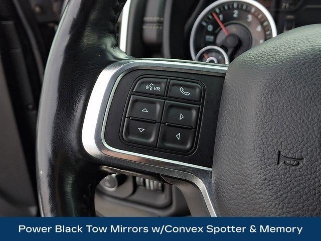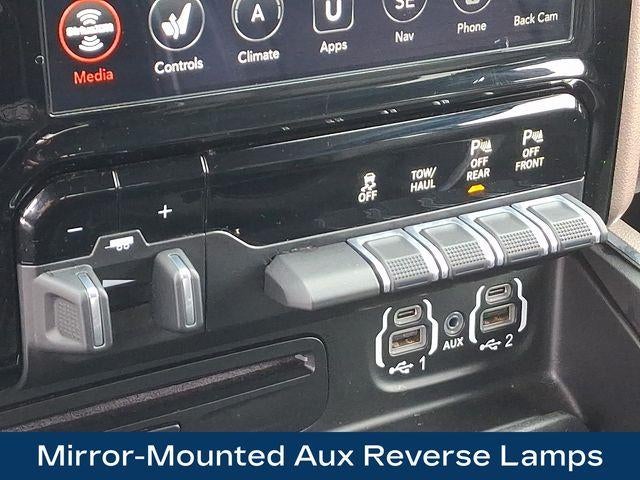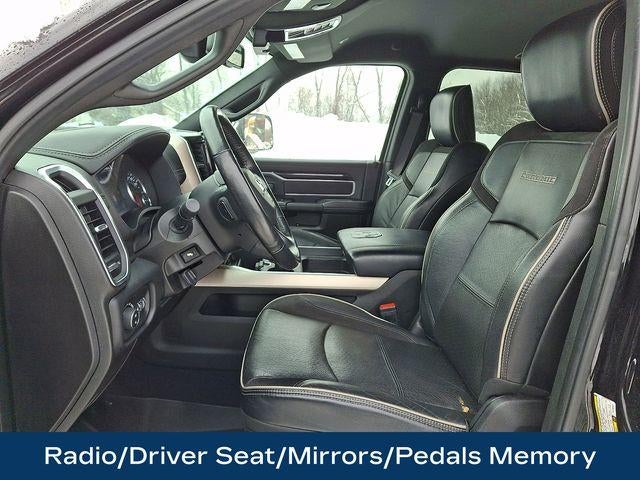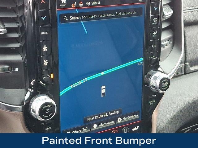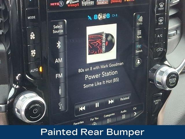 1-Year SiriusXM Guardian Trial, 17 Speaker High Performance Audio, 220 Amp Alternator, 2nd Row In Floor Storage Bins, 5-Year SiriusXM Traffic Service, 5-Year SiriusXM Travel Link Service, Auto High Beam Headlamp Control, Black Exterior Mirrors, Black Exterior Truck Badging, Black Headlamp Bezels, Black Interior Accents, Black Ram Head Tailgate Badge, Black Tail Lamp Bezels, Blind Spot & Cross Path Detection, Body Color Door Handles, Body Color Grille Surround, Disassociated Touchscreen Display, Exterior Mirrors w/Memory, Foam Bottle Insert (Door Trim Panel), For Details Visit DriveUconnect.com, Gloss Black Grille Billets/Accents, GPS Navigation, HD Radio, Heated Second Row Seats, Heavy Duty Snow Plow Prep Group, Laramie Level 2 Equipment Group, Media Hub w/2 Charge Only USBs, Mirror-Mounted Aux Reverse Lamps, Night Edition, Painted Front Bumper, Painted Rear Bumper, Power Adjustable Convex Aux Mirrors, Power Adjustable Pedals w/Memory, Power Black Tow Mirrors w/Convex Spotter & Memory, Protection Group, Radio: Uconnect 4C Nav w/8.4 Display, Radio/Driver Seat/Mirrors/Pedals Memory, Rain Sensitive Windshield Wipers, Ramcharger Wireless Charging Pad, Remote Tailgate Release, Single Disc Remote CD Player, SiriusXM Traffic Plus, SiriusXM Travel Link, Tow Hooks, Ventilated Front Seats, Wheels: 20 x 8.0 Black Painted Aluminum.