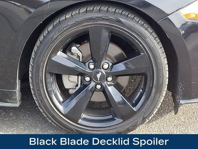 The Mustang EcoBoost's sleek and sophisticated design is further accentuated by the striking Black Accent Package, which includes 19-inch Ebony Black-Painted Aluminum wheels, a bold Black Blade Decklid Spoiler, and distinctive Black Front and Rear Pony Badges. This package adds a touch of athletic elegance that is sure to turn heads wherever you go.
