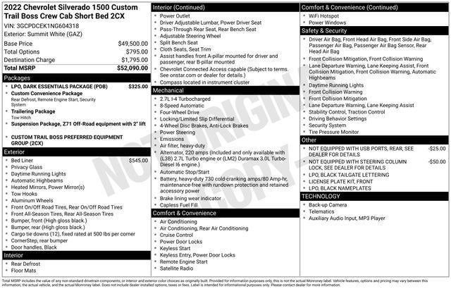 2022 Chevrolet Silverado 1500 Custom Trail Boss