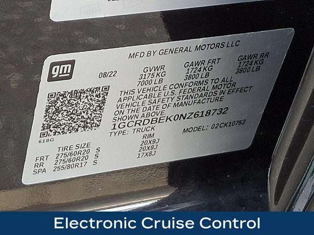 8-Speed Automatic, 4WD, Black Cloth, 10-Way Power Driver Seat w/Lumbar, 120-Volt Instrument Panel Power Outlet, 3.5 Monochromatic Display Driver Info Center, 6-Speaker Audio System, Apple CarPlay/Android Auto, Auto High-beam Headlights, Auto-Locking Rear Differential, Bluetooth® For Phone, Chevytec Spray-On Black Bedliner, Color-Keyed Carpeting Floor Covering, Compass, Custom Convenience Package, Custom Value Package, Deep-Tinted Glass, Dual Rear USB Ports (Charge Only), Electric Rear-Window Defogger, Electrical Steering Column Lock, Electronic Cruise Control, EZ Lift Power Lock & Release Tailgate, Front Center Armrest w/Storage, Front Frame-Mounted Black Recovery Hooks, Front Rubberized Vinyl Floor Mats, HD Rear Vision Camera, Heated door mirrors, High Capacity Suspension Package, IntelliBeam Automatic High Beam On/Off, LED Cargo Area Lighting, Manual Tilt Wheel Steering Column, OnStar & Chevrolet Connected Services Capable, Power door mirrors, Power Front Windows w/Driver Express Up/Down, Power Front Windows w/Passenger Express Down, Power Rear Windows w/Express Down, Preferred Equipment Group 1CX, Premium audio system: Chevrolet Infotainment 3, Radio: Chevrolet Infotainment 3 System, Rear 60/40 Folding Bench Seat (Folds Up), Rear Rubberized-Vinyl Floor Mats, Remote Keyless Entry, Remote Vehicle Starter System, SiriusXM Radio, Standard Tailgate, Theft Deterrent System (Unauthorized Entry), Trailering Package, Wheels: 20 x 9 Bright Silver Painted Aluminum, Wireless Phone Projection.