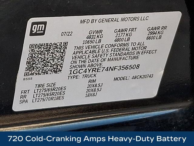 6-Speed Automatic, 4WD, Jet Black Leather, 10-Way Power Driver Seat Adjuster w/Lumbar, 10-Way Power Passenger Seat Adjuster w/Lumbar, 12-Volt Rear Auxiliary Power Outlet, 120-Volt Bed Mounted Power Outlet, 120-Volt Instrument Panel Power Outlet, 170 Amp Alternator, 6 Rectangular Chromed Tubular Assist Steps, 720 Cold-Cranking Amps Heavy-Duty Battery, 8 Driver Information Center, Advanced Trailering System, Auto-Dimming Inside Rear-View Mirror, Bed View Camera w/2 Trailer Camera Provisions, Black Chevytec Spray-On Bedliner w/Chevrolet Logo, Bluetooth® For Phone, BOSE Premium 7-Speaker Sound System, Chevrolet Connected Access Capable, Chrome Front Grille, Chrome Mirror Caps, Color-Keyed Carpeting Floor Covering, Compass, Deep-Tinted Glass, Dual Charge-Only USB Ports (2nd Row), Electric Rear-Window Defogger, Electrical Lock Control Steering Column, Electronic Cruise Control w/Set & Resume Speed, Exterior Parking Camera Rear, Front Carpeted Floor Mats, Front Chrome Recovery Hooks, Front LED Fog Lamps, HD Surround Vision w/2 Trailer View Camera Provisions, Heated & Auto-Dim Pwr Vertical Trailering Mirrors, Heated door mirrors, Heated Driver & Front Outboard Passenger Seating, Heated Steering Wheel, Heated steering wheel, Hitch Guidance w/Hitch View, Integrated Trailer Brake Controller, Keyless Open & Start, Lane Change Alert w/Side Blind Zone Alert, Leather-Wrapped Steering Wheel, LED Cargo Area Lighting, LED Smoked Amber Roof Marker Lamps, Manual Tilt & Telescoping Steering Column, Navigation System, OnStar & Chevrolet Connected Services Capable, Polished Exhaust Tip, Power Door Locks, Power Front Windows w/Driver Express Up/Down, Power Front Windows w/Passenger Express Up/Down, Power Rear Windows w/Express Down, Power Sliding Rear Window w/Defogger, Power Sunroof, Preferred Equipment Group 3LZ, Radio: Chevrolet Infotainment 3 Premium System, Rear Carpeted Floor Mats, Rear Cross Traffic Alert, Rear Wheelhouse Liners, Remote Vehicle Starter System, SiriusXM w/360L, Standard Tailgate, Steering Wheel Audio Controls, Suspension Package, Ultrasonic Front & Rear Park Assist, Unauthorized Entry Theft-Deterrent System, Universal Home Remote, Up-Level Rear Seat w/Storage Package, Ventilated Driver & Front Passenger Seats, Wheels: 20 16-Spoke Polished Aluminum, Wi-Fi Hotspot Capable, Wireless Charging, Wireless Phone Projection.
