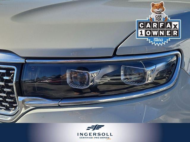 Step inside the luxurious cabin and be enveloped in the finest materials and craftsmanship. Genuine wood accents, heated and ventilated front seats, and a stunning 19-speaker audio system create an unparalleled sense of refinement and comfort. The available Heads-Up Display and intuitive Uconnect 5 infotainment system with 12-inch touchscreen seamlessly integrate cutting-edge technology into your driving experience.