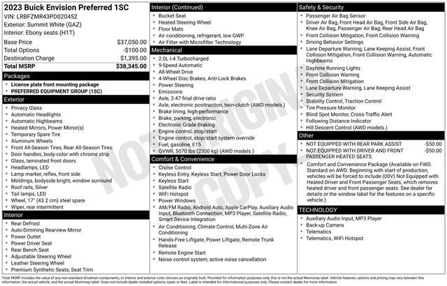 We invite you to schedule a test drive and experience the exceptional 2023 Buick Envision Preferred for yourself. Let us demonstrate how this remarkable SUV can enhance your daily commute and weekend adventures. We're confident that once you experience its remarkable capabilities, you'll be eager to make it your own.