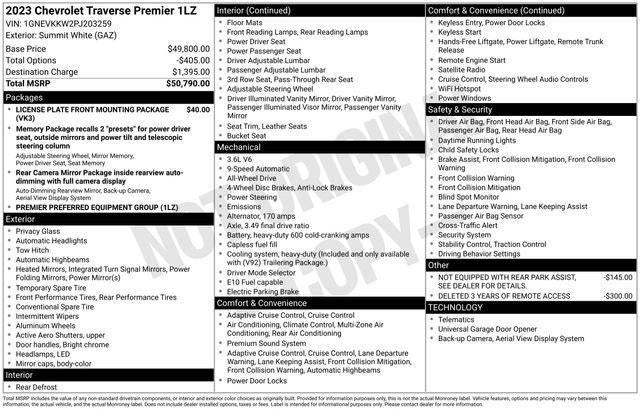 Summit White 2023 Chevrolet Traverse Premier 4D Sport Utility AWD 3.6L V6 SIDI VVT 9-Speed Automatic