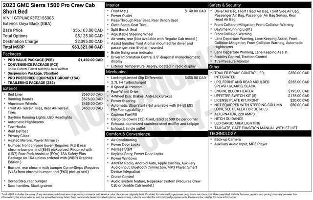 With its exceptional performance, versatility, and cutting-edge technology, the 2023 GMC Sierra 1500 Pro is the ultimate work and adventure companion. Experience the power and capability for yourself by visiting our showroom today. We're confident you'll be impressed by this impressive truck.