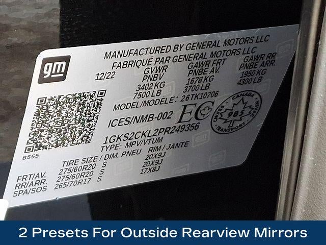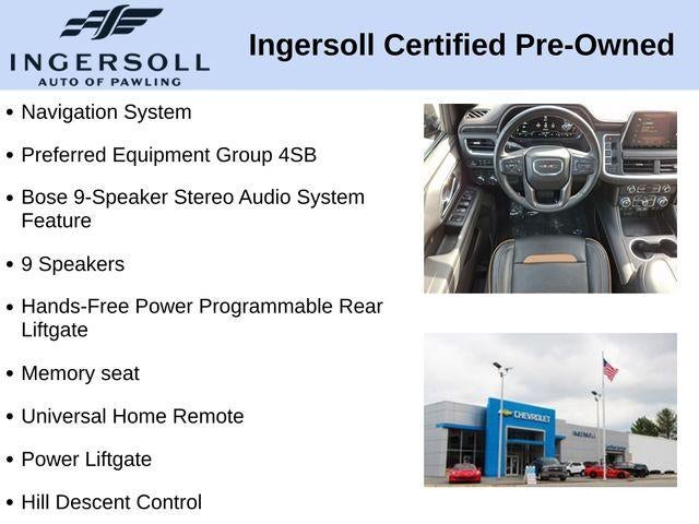 2 Presets For Outside Rearview Mirrors, 3 Years of GMC Connected Services, 3 Years of OnStar Safety & Security, 3rd Row 60/40 Power-Folding Split-Bench Seat, 9 Speakers, Apple CarPlay/Android Auto, Auto High-beam Headlights, Black Roof-Mounted Luggage Rack Side Rails, Bose 9-Speaker Stereo Audio System Feature, Bright Front & Rear Door Sill Plates, Front High-Approach Angle Fascia, Fully automatic headlights, Hands-Free Power Programmable Rear Liftgate, Heated & Ventilated Driver & Front Passenger Seats, Heated 2nd Row Outboard Position Seats, Heated Driver & Front Passenger Seats, Heated Steering Wheel, Heavy-Duty Air Filter, Hill Descent Control, Inside Rear-View Auto-Dimming Mirror, IntelliBeam Automatic High Beam On/Off, Lane Change Alert w/Side Blind Zone Alert, Memory seat, Navigation System, Outside Heated Power-Adjustable Mirrors, Power Liftgate, Power Release 2nd Row 60/40 Split-Folding Bench Seat, Power Tilt & Telescopic Steering Column, Preferred Equipment Group 4SB, Rain sensing wipers, Red Horizontal-Mounted Recovery Hooks, Safety Alert Seat, Universal Home Remote, Wheels: 20 x 9 6-Spoke Machined Aluminum, Wireless Charging.