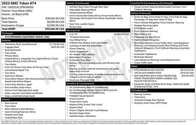Onyx Black 2023 GMC Yukon AT4 4D Sport Utility 4WD EcoTec3 6.2L V8 10-Speed Automatic with Overdrive