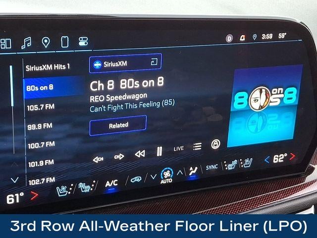 AWD, 10 Speakers, 1st & 2nd Row All-Weather Floor Liners (LPO), 3rd Row All-Weather Floor Liner (LPO), 6-Way Power Front Passenger Seat Adjuster, 8-Way Power Driver Seat Adjuster, Apple CarPlay/Android Auto, Auto High-beam Headlights, Bose Premium 10-Speaker Audio System Feature, Driver 4-Way Power Lumbar Seat Adjuster, Exterior Parking Camera Rear, Floor Liner Package (LPO), Front Passenger 4-Way Power Lumbar Seat Adjuster, Heated door mirrors, Heated front seats, Heated rear seats, Heated steering wheel, Navigation System, Perforated Leather-Appointed Seat Trim, Power driver seat, Power Liftgate, Power moonroof, Preferred Equipment Group 2RS, Radio: 17.7 Diagonal Display, Rain sensing wipers, Remote keyless entry, SiriusXM w/360L, Ventilated front seats, Wheels: 22 High Gloss Black Painted Aluminum.
