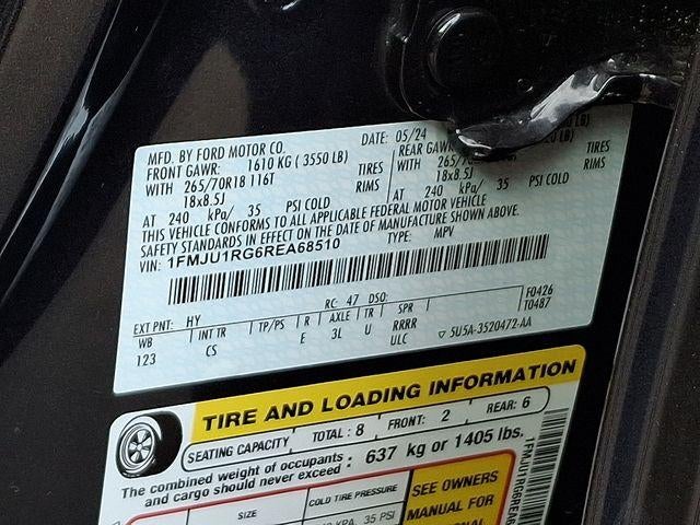 2nd Row Power-Folding 40/20/40 Leather Bench Seat, Auto High-beam Headlights, Auto-dimming Rear-View mirror, Equipment Group 500A Standard Package, Exterior Parking Camera Rear, Fully automatic headlights, Heated & Vent Cloth/Vinyl Front Captain's Chairs, Heated door mirrors, Heated front seats, Heated steering wheel, Heavy-Duty Trailer Tow Package, Integrated Trailer Brake Controller, Navigation system: Connected Navigation, Power door mirrors, Power Liftgate, Pro Trailer Backup Assist, Radio: AM/FM Stereo w/MP3 Capable, SiriusXM w/360L, SYNC 4 w/Enhanced Voice Recognition, Ventilated front seats, Wheels: 18 Ebony-Painted.