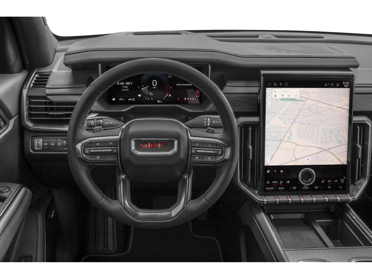 Elevate your driving experience with the advanced technology features of the Acadia AT4. The 15-inch Premium GMC Infotainment System seamlessly integrates with your smartphone, allowing you to access your favorite music, navigation, and communication apps with ease. Stay connected and informed with the OnStar and GMC Connected Services, providing emergency assistance and remote vehicle access at your fingertips.