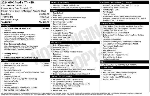 Powered by a 2.5L DOHC engine and equipped with an 8-speed automatic transmission and all-wheel drive, the Acadia AT4 delivers a dynamic and confident driving experience. With an EPA-estimated 19 MPG in the city and 24 MPG on the highway, this SUV strikes the perfect balance between performance and efficiency.