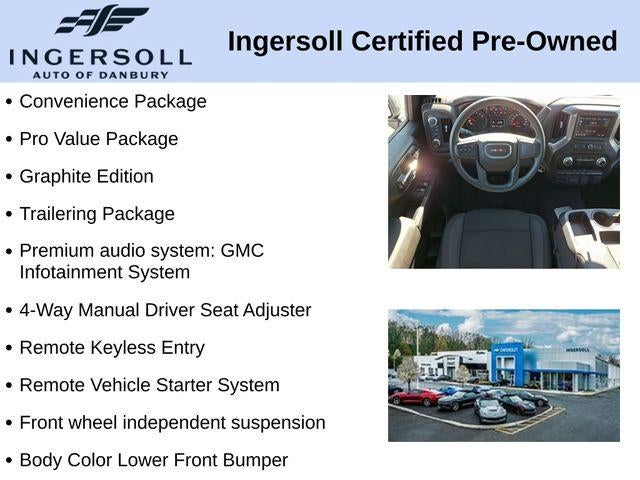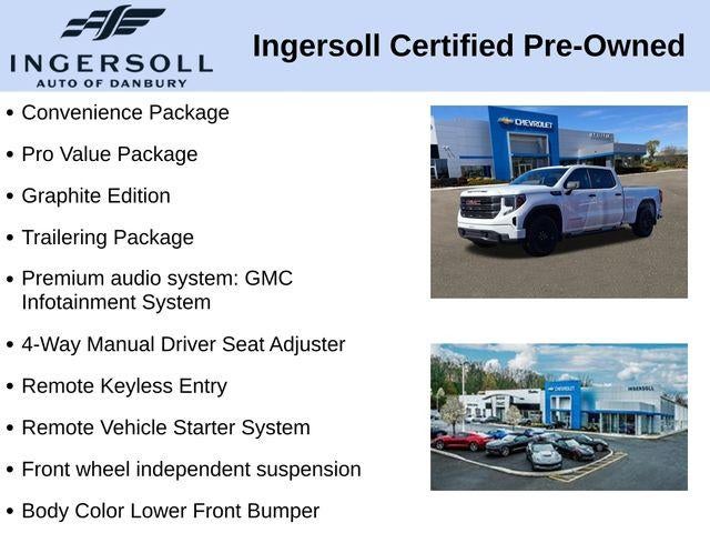 Boasting a powerful EcoTec3 5.3L V8 engine paired with a smooth-shifting 10-Speed Automatic transmission, the Sierra 1500 Pro delivers impressive performance and efficiency. With its 4WD capability, you'll have the confidence to tackle any task, from towing your trailer to navigating through inclement weather.