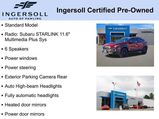 6 Speakers, Auto High-beam Headlights, Auto-Dimming Mirror w/Compass & HomeLink, Exterior Parking Camera Rear, Front Bucket Seats, Fully automatic headlights, Heated door mirrors, Heated Front Bucket Seats, Power door mirrors, Power steering, Power windows, Radio: Subaru STARLINK 11.6 Multimedia Plus Sys, Rear Seatback Protector, Standard Model, STARLINK/Apple CarPlay/Android Auto, Wheels: 17 x 7.0J Matte Black Aluminum Alloy, Wilderness StarTex Upholstery.