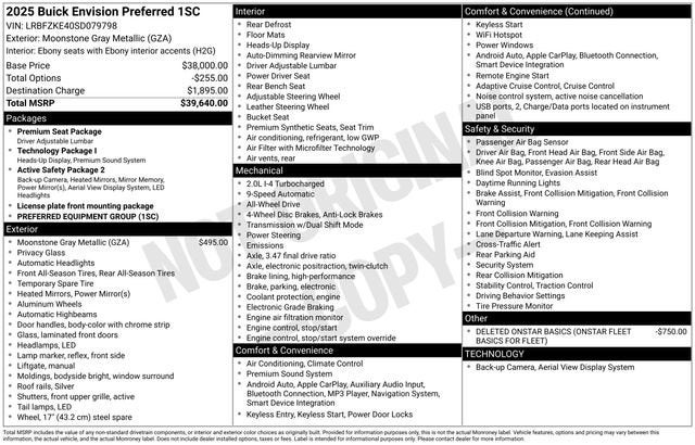 Adorned in the stunning Moonstone Gray Metallic exterior, this Envision Preferred boasts an impressive array of features, including: