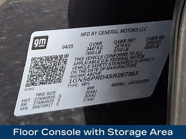 1st and 2nd Row Color-Keyed Carpeted Floor Mats, 2-Speed Active Electronic AutoTrac Transfer Case, 3-Spoke Wrapped Steering Wheel, 3rd Row Manual 60/40 Split-Folding Bench Seats, Auto-Dimming Inside Rear-View Mirror, Black Tubular Assist Steps, Bright Front and Rear Door Sill Plates, Color-Keyed Carpeting Floor Covering, Dual Exhaust System, Floor Console with Storage Area, Front Bucket Seats, Front High-Approach Angle Fascia, Front LED Fog Lamps, Front Pedestrian and Bicyclist Braking, Frontal Driver and Outboard Passenger Airbags, Hill Descent Control, Memory Settings For Driver, Navigation system: Google built-in compatibility (select service plan required, terms and limitations apply), Preferred Equipment Group 2Z7, Rear Power Liftgate, Red Horizontal-Mounted Recovery Hooks, Remote Start, SiriusXM with 360L Trial Subscription, Universal Home Remote, USB Ports, Wheels: 20 x 9 Bright Machined Aluminum, Wireless Phone Charging, Z71 Exterior Features.