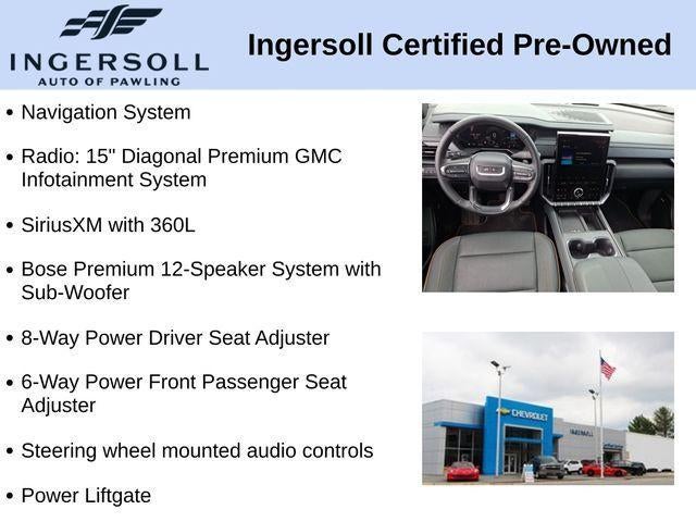 2-Way Driver Power Lumbar Seat Adjuster, 6-Way Power Front Passenger Seat Adjuster, 7-Passenger Seating (2-2-3 Seating Configuration), 8-Way Power Driver Seat Adjuster, Apple CarPlay/Android Auto, Auto High-beam Headlights, Bose Premium 12-Speaker System with Sub-Woofer, Electronic Stability Control, Exterior Parking Camera Rear, Front Passenger Power Lumbar Seat Adjuster, Fully automatic headlights, Heated Driver and Front Passenger Seats, Heated steering wheel, Navigation System, Power Liftgate, Radio: 15 Diagonal Premium GMC Infotainment System, SiriusXM with 360L, Steering wheel mounted audio controls, Wheels: 18 x 8 Dark Machined Aluminum.