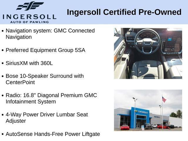 15 Diagonal Multi-Color Head-Up Display, 4-Way Power Driver Lumbar Seat Adjuster, 4-Way Power Front Passenger Lumbar Seat Adjuster, Adaptive suspension, Auto High-beam Headlights, AutoSense Hands-Free Power Liftgate, Bose 10-Speaker Surround with CenterPoint, Bright Front and Rear Door Sill Plates, Dual Exhaust System, Galvano Bodyside Moldings, Heads-Up Display, Magnetic Ride Control Suspension, Memory seat, Navigation system: GMC Connected Navigation, Perforated Heather and Ventilated Driver and Front Passenger Seats, Power Liftgate, Power Release 2nd Row Bucket Seats, Power Tilt and Telescopic Steering Column, Preferred Equipment Group 5SA, Radio: 16.8 Diagonal Premium GMC Infotainment System, SiriusXM with 360L, Wheels: 20 x 9 6-Spoke Polished Aluminum.