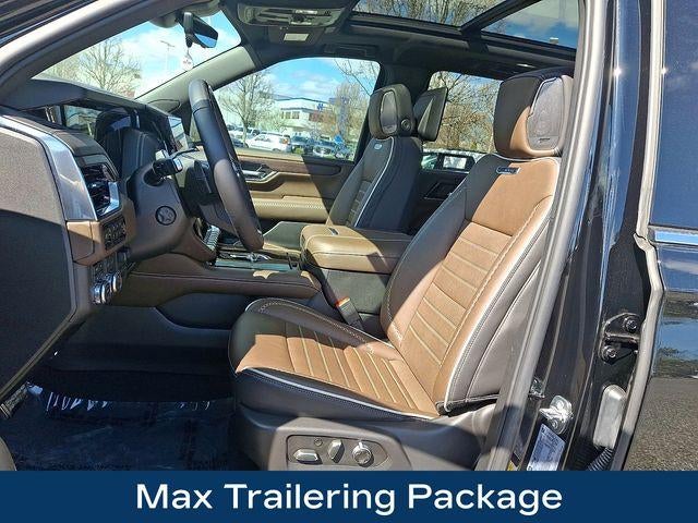 Step inside the Yukon Denali Ultimate and be enveloped in the luxurious full-grain leather seating, which offers exceptional support and comfort. The spacious and versatile interior provides ample room for your family and all their gear, with a split-folding third-row seat and a power liftgate for effortless loading and unloading.