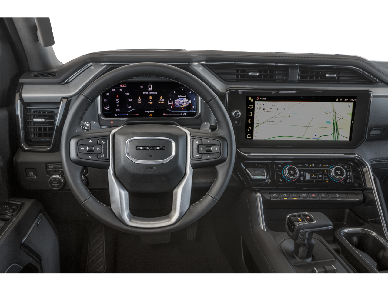 12-Way Power Driver Seat Adjuster with Lumbar, 12-Way Power Passenger Seat Adjuster with Lumbar, 120-Volt Interior Power Outlet, 170 Amp Alternator, 2 Charge/Data USB Ports Inside Center Console, 2 Type-C Charge-Only Rear USB Ports, 2 USB Ports, Adaptive suspension, Auto High-beam Headlights, Auto-Locking Rear Differential, Auxiliary External Transmission Oil Cooler, Bed View Camera, Chrome Header with Signature Denali Chrome Grille, Chrome Recovery Hooks, Chrome Wheel to Wheel Assist Steps, Color-Keyed Carpeting Floor Covering, Deep-Tinted Glass, Denali Premium Suspension with Adaptive Ride Control, Electric Rear-Window Defogger, Floor-Mounted Center Console, Front Rain-Sensing Wipers, HD Surround Vision, Heated 2nd Row Outboard Seats, Heated Driver and Front Outboard Passenger Seating, Heated steering wheel, Heavy-Duty Air Filter, Hill Descent Control, Hitch View, in-Vehicle Trailering System App, Integrated Trailer Brake Controller, Keyless Open and Start, LED Cargo Area Lighting, Memory seat, Navigation System, OnStar Services Capable, Perimeter Lighting, Power Door Locks, Power Front Passenger Windows with Express Up/Down, Power Front Windows with Driver Express Up/Down, Power Rake and Telescoping Steering Column, Power Rear Windows with Express Down, Power Sliding Rear Window with Rear Defogger, Preferred Equipment Group 5SA, Premium Bose 7-Speaker Sound System, Push Button Start, Rear Cross Traffic Braking, Rear Pedestrian Detection, Rear Wheelhouse Liners, Remote Vehicle Starter System, SiriusXM with 360L Trial Subscription, Spray-on Pickup Bedliner with GMC Logo, Steering Wheel Audio Controls, Theft Deterrent System (unauthorized Entry), Trailer Camera Provisions, Trailer Side Blind Zone Alert, Trailering Package, Ultrasonic Front and Rear Park Assist, Universal Home Remote, Ventilated Driver and Front Passenger Seats, Wheels: 20 x 9 Multi-Dimensional Polished Aluminum, Wi-Fi Hotspot Capable, Wireless Charging.